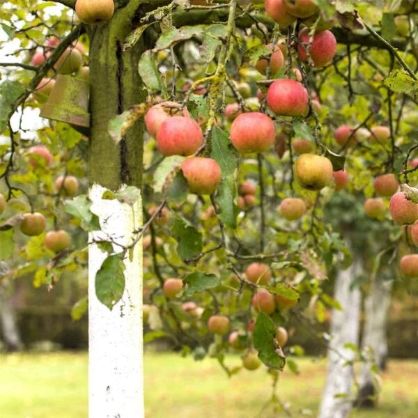 Bovendien zorgen de wit geschilderde boomstammen voor een mooie en idyllische toets aan een boomgaard, sierbomen of zelfs aan een mooie alleenstaande boom. De witte kleur en de kalk vormen een fysieke obstructie en maken de stam onaantrekkelijk voor schadeverwekkers.